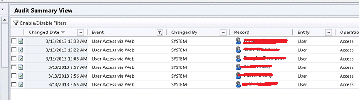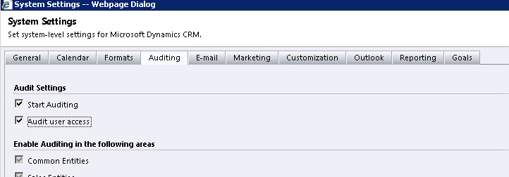 In order to view the User Access information in the Audit, User Access Audit option should be enabled in the system settings in CRM