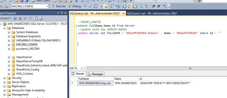 update server set FULLNAME = ‘NEWAPPSERVER.Domain’ , Name = ‘NEWAPPSERVER’ where id = ”