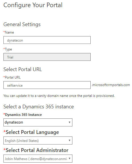 - Portal is setup with the default template and default integrations with selected CRM organization. This can be customized based on the customer requirement from CRM.