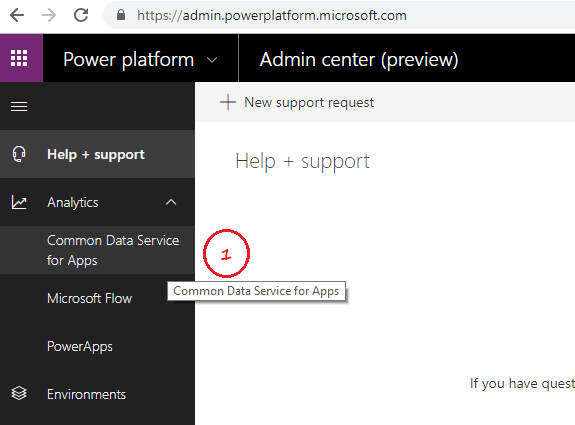 - Select Analytics > Common Data Service for Apps. This will open the Organization preview dashboard