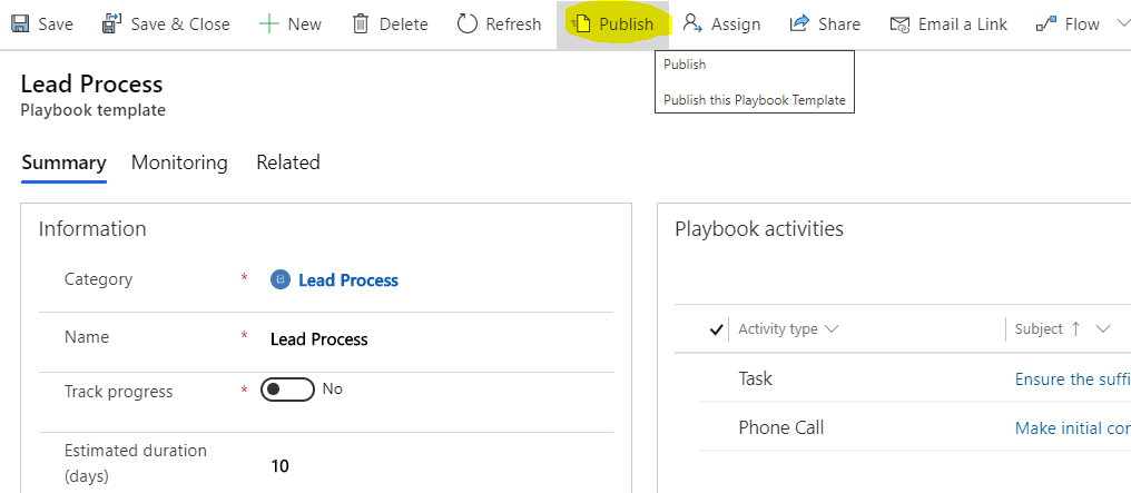 Playbook template allows managers to define set of activities [ limited to Tasks, Phone Calls and Appointment currently] which should be initiated on a specific event [manually as well as automatically].