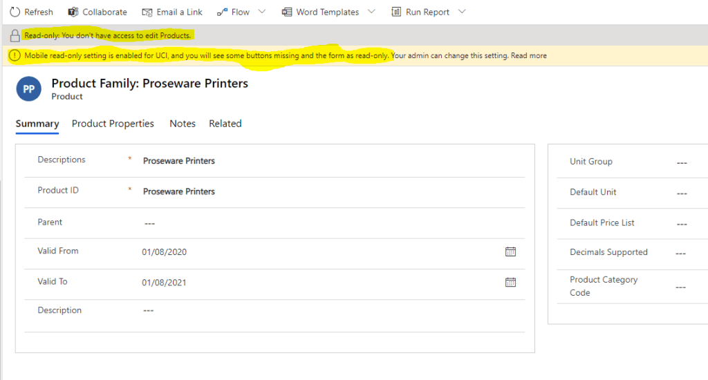 One of our Dynamics 365 customers faced an issue where the “Buttons to create the products were missing in UCI App and also when opens the existing records, it shows as ‘Read Only’ in (Sales Hub) but works in Legacy app”. In our cases, we had this issue with ‘Products’ entity but this can happen for other entities as well.