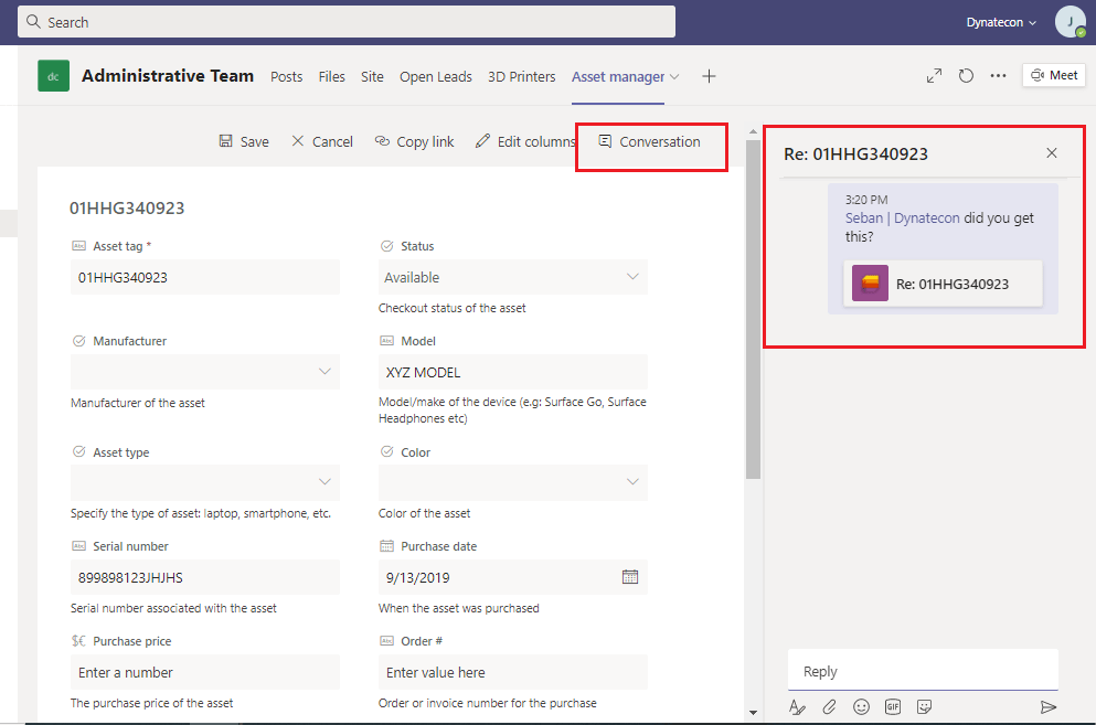 Step#9: There is a good feature to initiate a chat conversion from a list item. Lets say if we admin user needs to check the status of a particular asset with specific user, its possible from here.