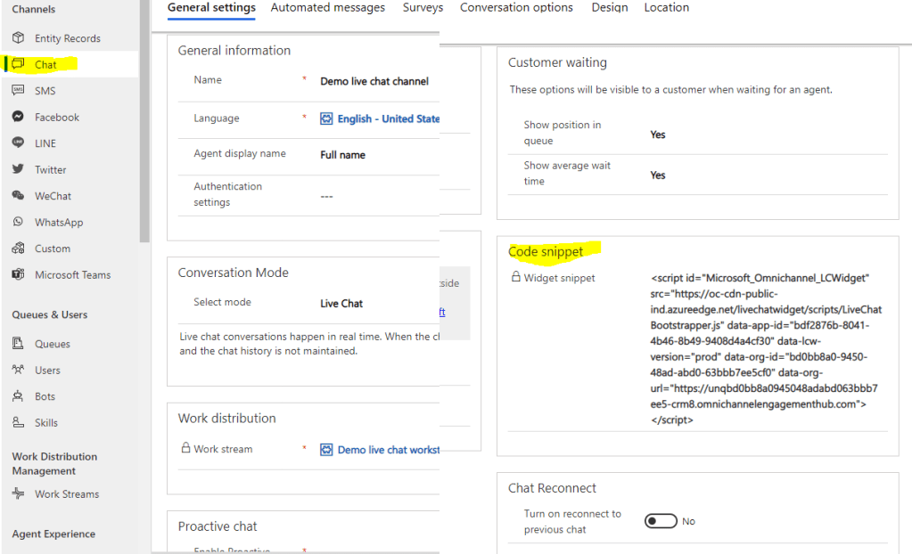- Go to the Omnichannel for Administration App and configure the Live chat widget, setup the Queues, Setup Workstream, Setup Routing Rules etc. You may find more detailed instruction here: