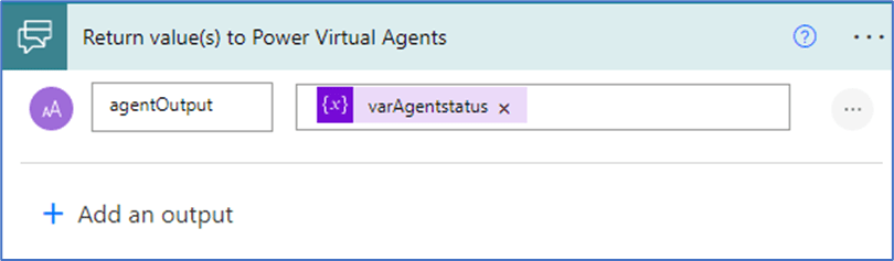 From above figure (Fig. 16) it is clear that the power automate is returning a variable agentOutput. On checking the value present in the variable ‘agentOutput’ further decisions can be made.