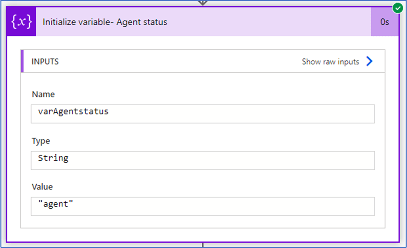 Already a variable was declared to store the status of agent. If the condition is true then set “Will fetch an agent” to the variable. If the condition is false then set “No agents are available” to the variable.