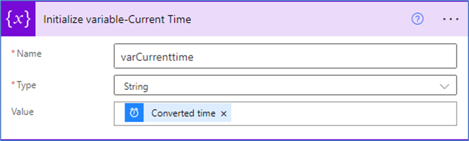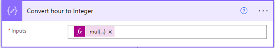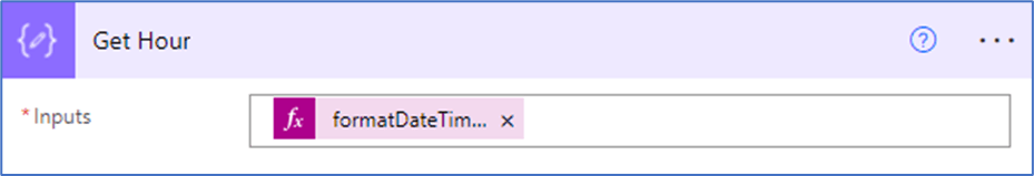 In the inputs, add the given expression ‘formatDateTime(variables(‘varCurrenttime’),’HH’)’ which extracts only the hour from the ‘HH:mm’ format.