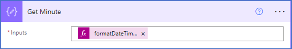 In the inputs, add the given expression ‘formatDateTime(variables(‘varCurrenttime’),’mm’)’ which extracts only the minute from the ‘HH:mm’ format.