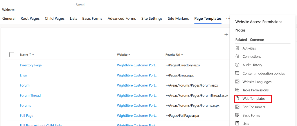 Step 2: Open the web template and select the webpage where the table is (if you don’t find the template of your page in web templates, just check in the page template section).