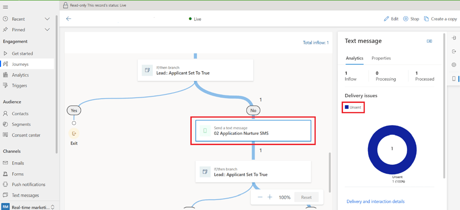 Therefore, only by enabling this ‘Opted In’ consent for the recipient’s numbers, you can send text messages to respective lead records through real-time marketing journeys.