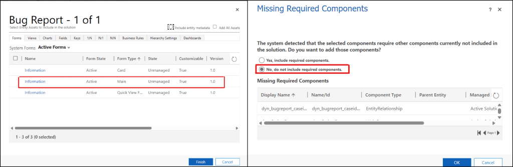 Step V: Select the form, Click finish then select the required components and Click Ok.