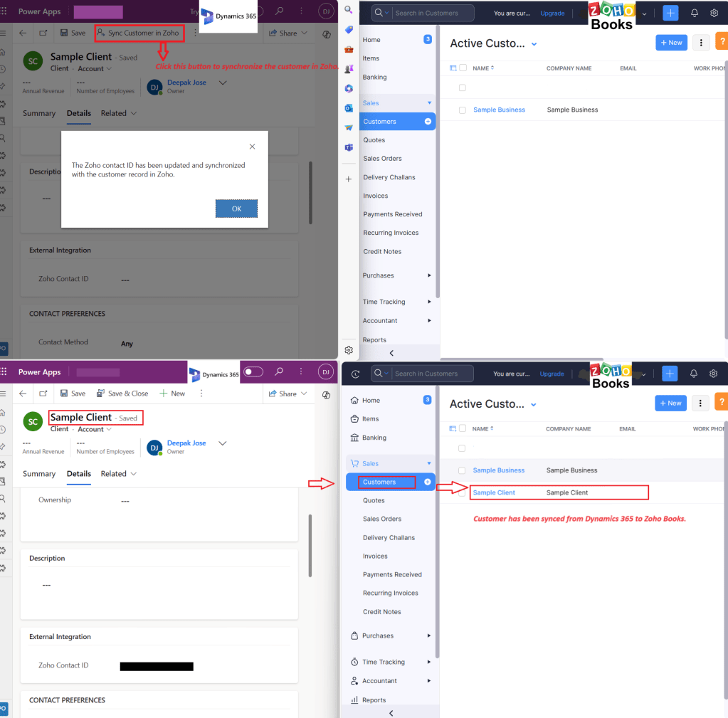 By automating the integration between Dynamics 365 and Zoho Books, businesses can streamline their processes and improve productivity. The custom button and automated cloud flow facilitate seamless data synchronization, enabling efficient management of customer information across platforms.