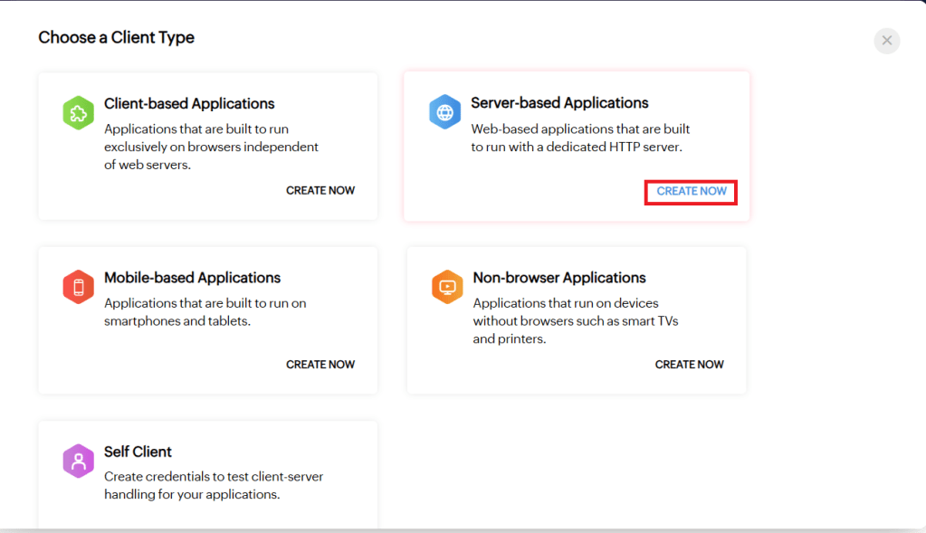 - Access Zoho API Console: Navigate to Zoho API Console to add a new client for your server-based application.