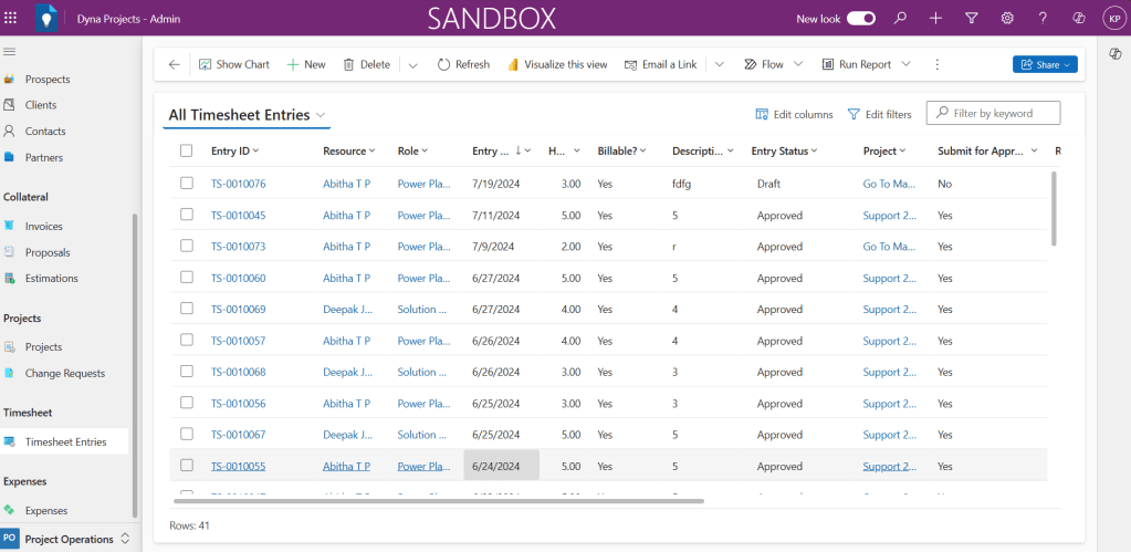 All Timesheet Entries list will be shown.