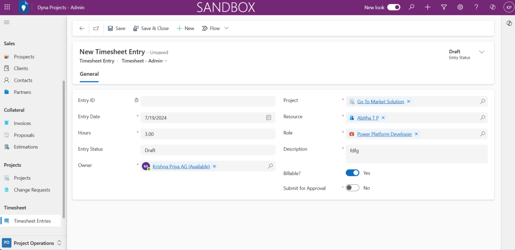 Here are the steps to perform to create a new Timesheet Entry in Power Apps based Project Tracking system.