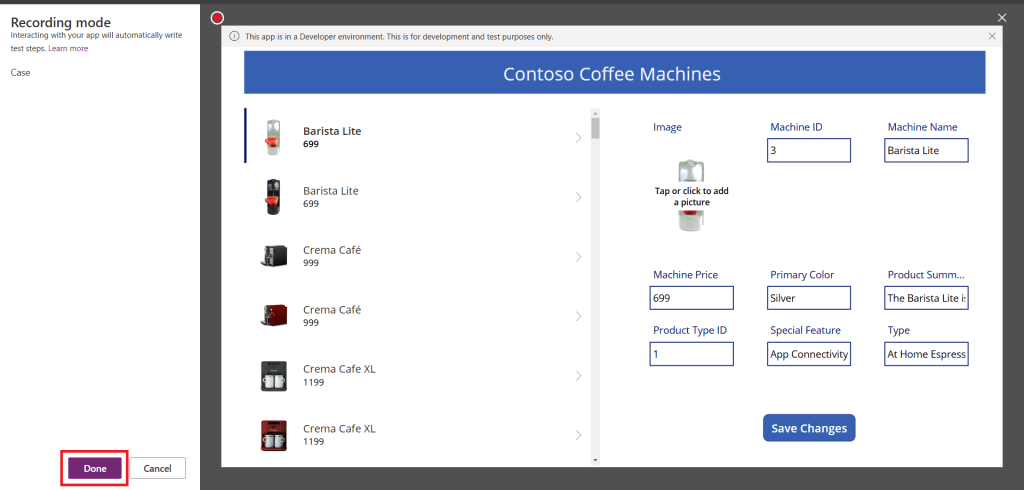 3.Once interaction completes, select Done. Optionally, you can select Cancel to return to Test Studio without your interactions getting recorded.
