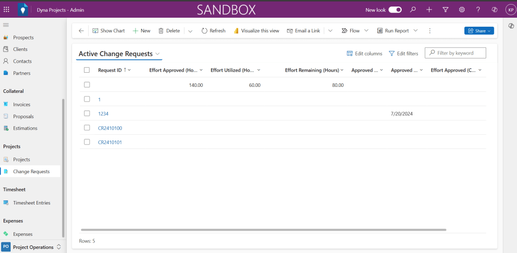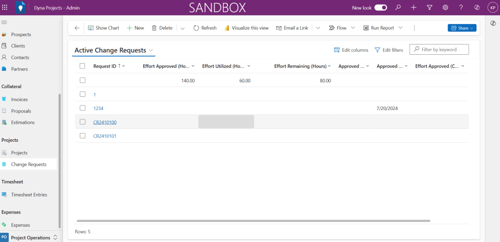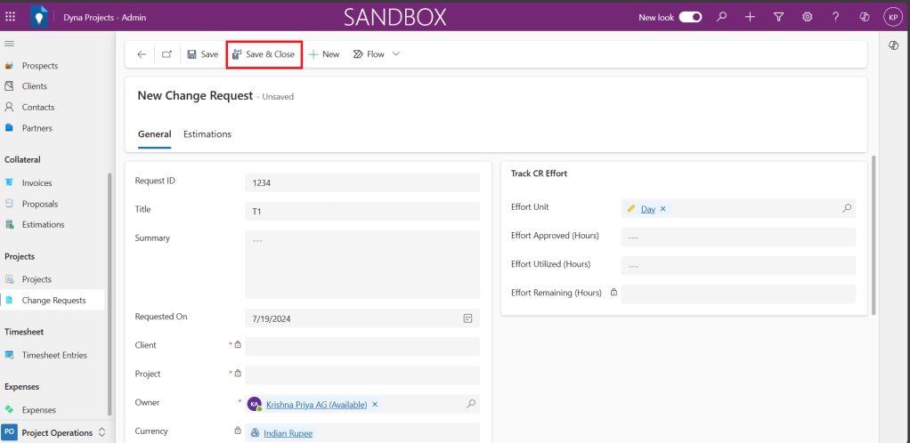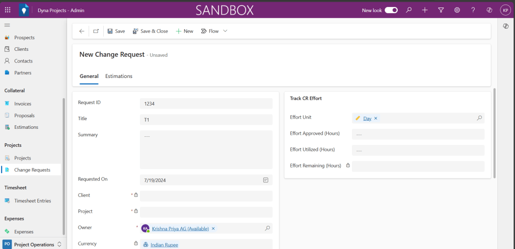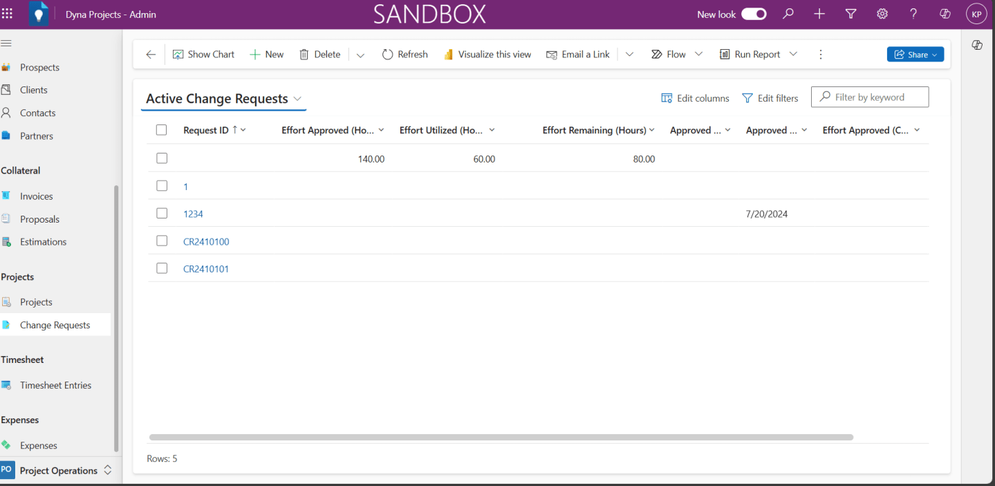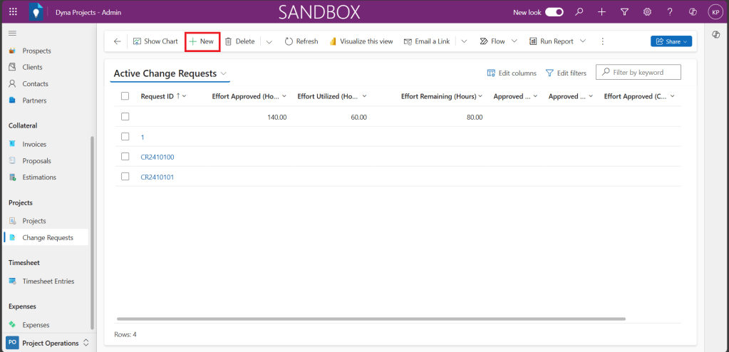 2. Click on ‘Change Requests’ under Projects in Project operations from the left navigation bar.