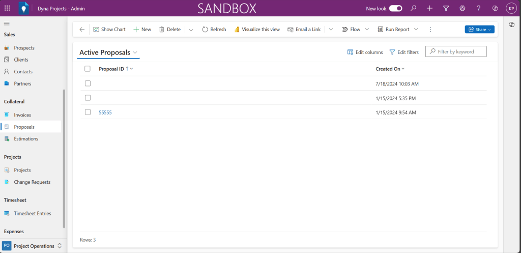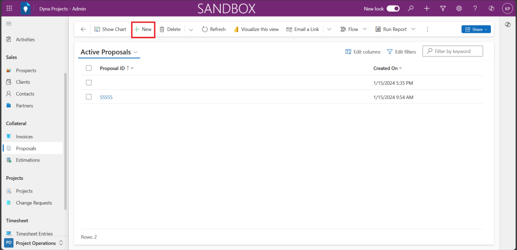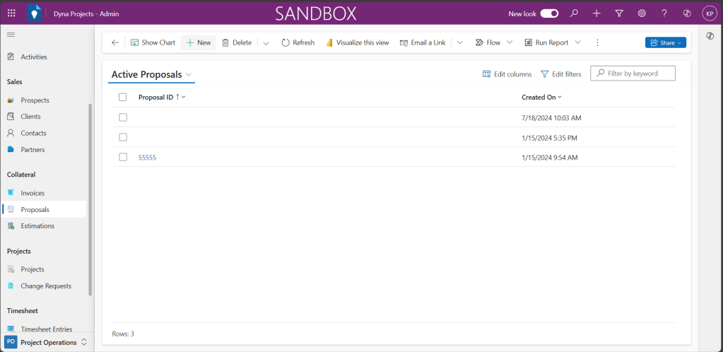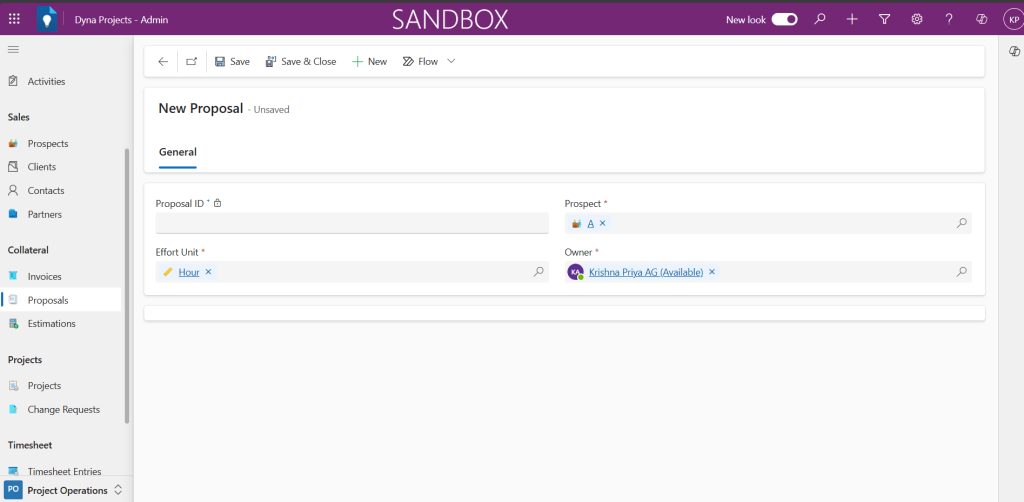 Here are the steps to perform to create a new Proposal in Power Apps based Project Tracking system.