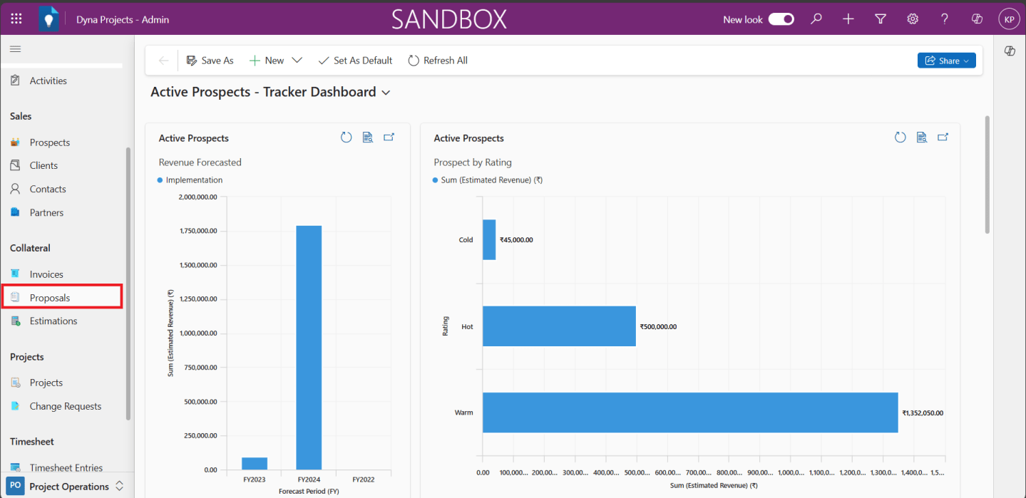 2. Click on ‘Proposals’ under Collateral in Project Operations from the left navigation bar.