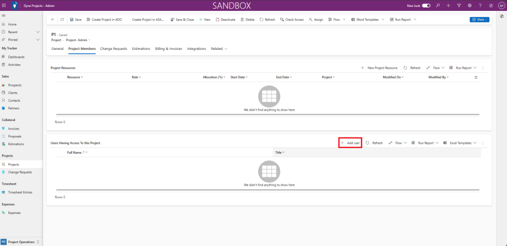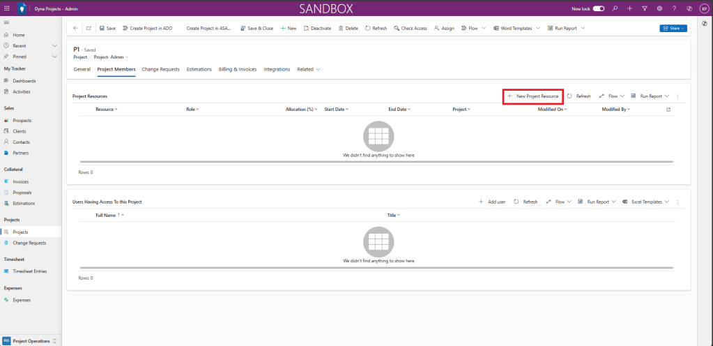 You can add new Project Resource by clicking on the ‘+New Project’ Resource button.