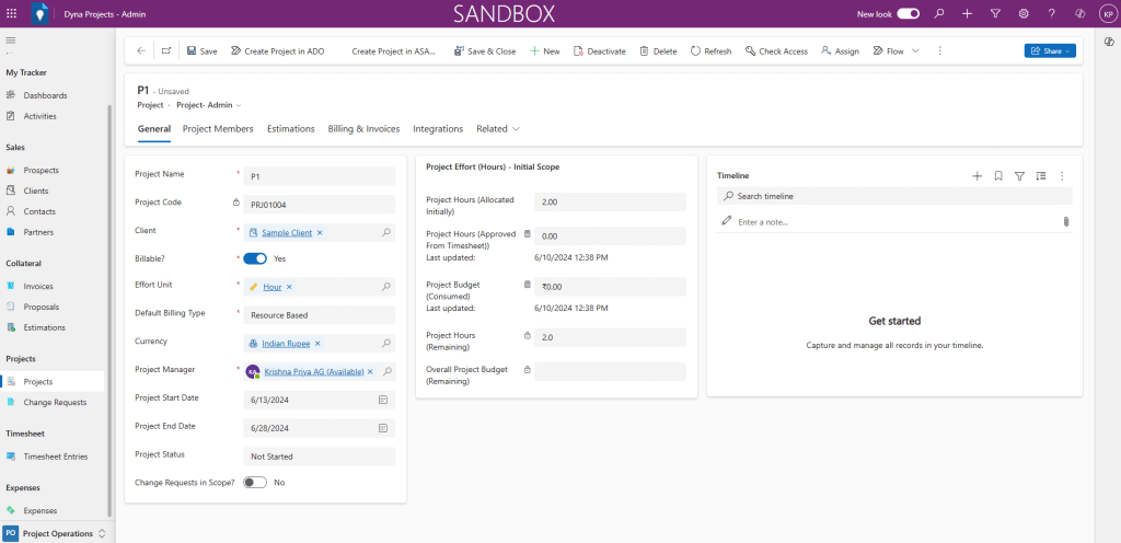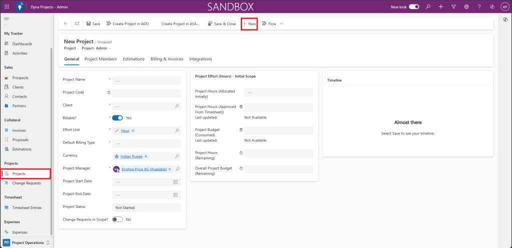How to create a Project in Dyna Projects(Project Operations app in Power Apps)