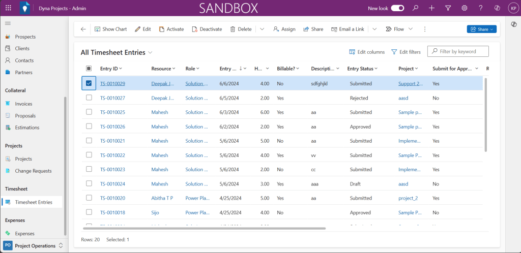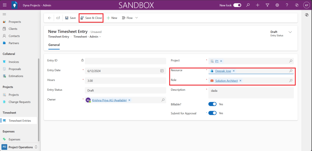 How to create a Timesheet Entry in Dyna Projects(Project Operations app in Power Apps)