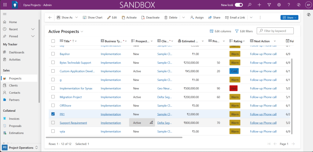 How to create a Prospect in Dyna Projects(Project Operations app in Power Apps)