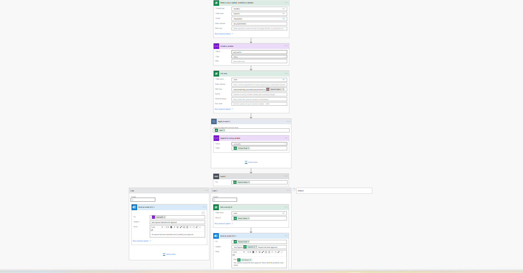 teammembership_associationquery. - Switch Condition: Check the Expense Status.