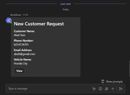 Step 3: Send Adaptive Card to the dealer via Teams.