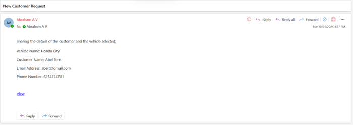 The Adaptive Card sent to dealers through Microsoft Teams is a vital component of this AI-powered car leasing assistant. It presents all key customer information—such as vehicle interest, customer name, email, and phone number—in a clear, interactive format. This card allows dealers to instantly review and respond to leads without leaving the Teams environment, significantly speeding up communication and improving response times. By integrating this feature, the assistant streamlines the lead management process, providing a seamless experience for both the dealer and the customer and reducing manual follow-up overhead.