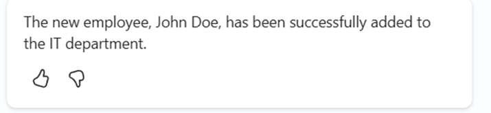 - “Add new employee John Smith in IT with email john@contoso.com, phone 99999”