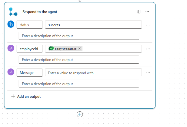 - Configure the action’s success response: Use the flow outputs to show a friendly confirmation like: