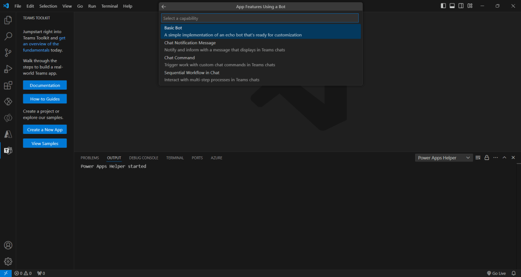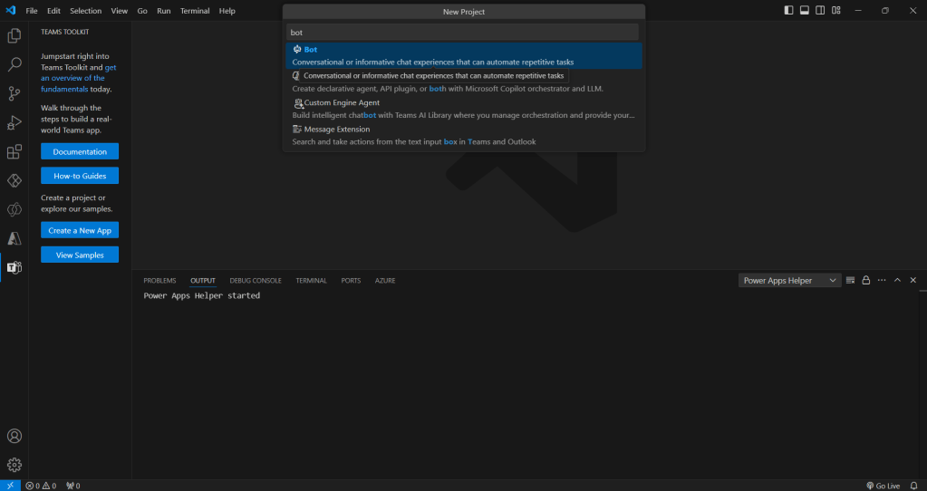 Let’s start by setting up a basic Teams bot using Node.js and the Bot Framework SDK in Visual Studio Code. You’ll need to install the Teams Toolkit extension, which enables login to your Azure account, where you can then provision, deploy, and publish your bot.