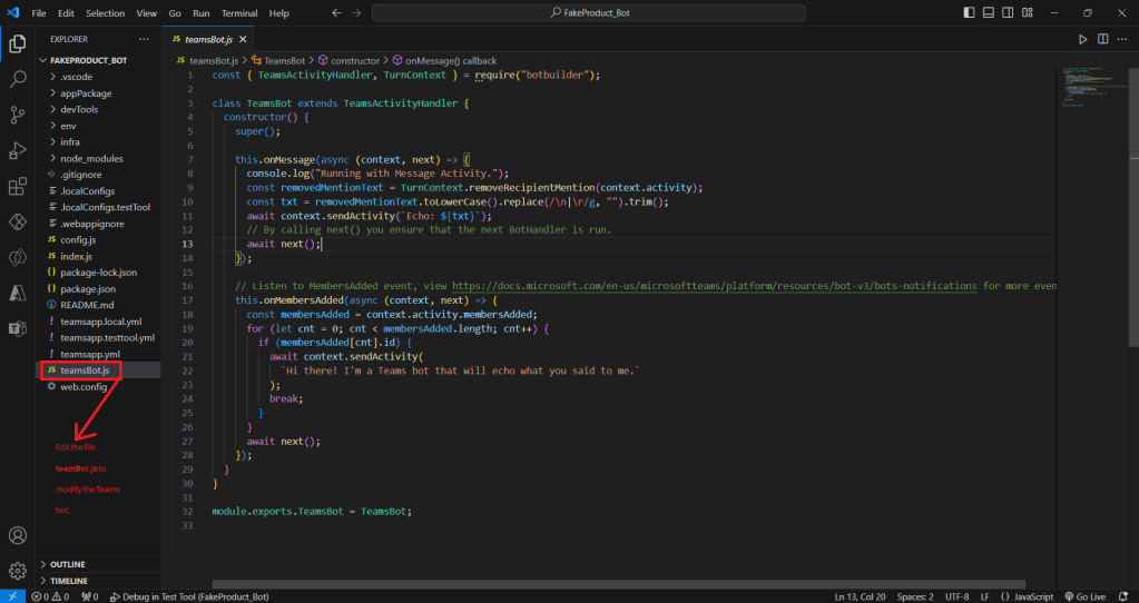 teamBot.js for Customization.Handling User Input