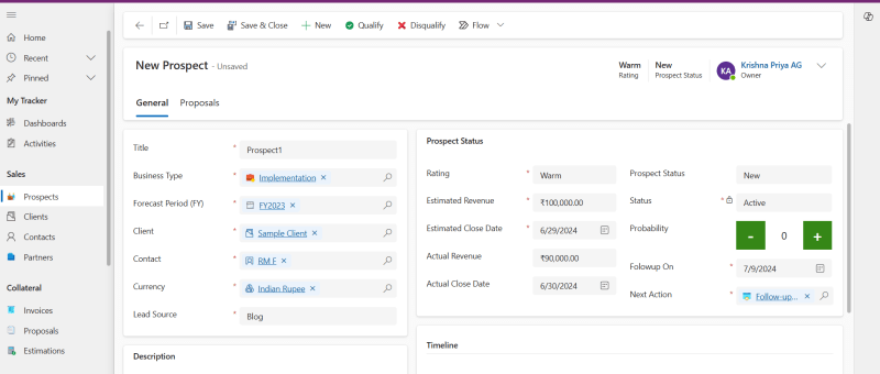 How to create a new Prospect in Power Apps based Project tracking tool?