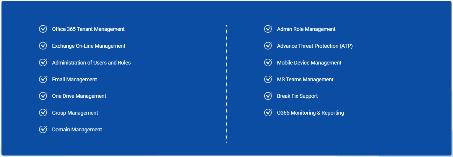 Get enterprise-class support and the best value for Microsoft 365 with Dynatecon’s Office 365 managed services starting at just ₹40/user/month. You can choose to get managed services either on per user or support call basis.