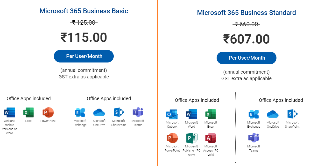 Microsoft 365 Pricing starts from INR 125/User/Month (Annual Commitment & GST extra). As a Microsoft cloud Solution provider, we would be able to provide you the best rate in the market.